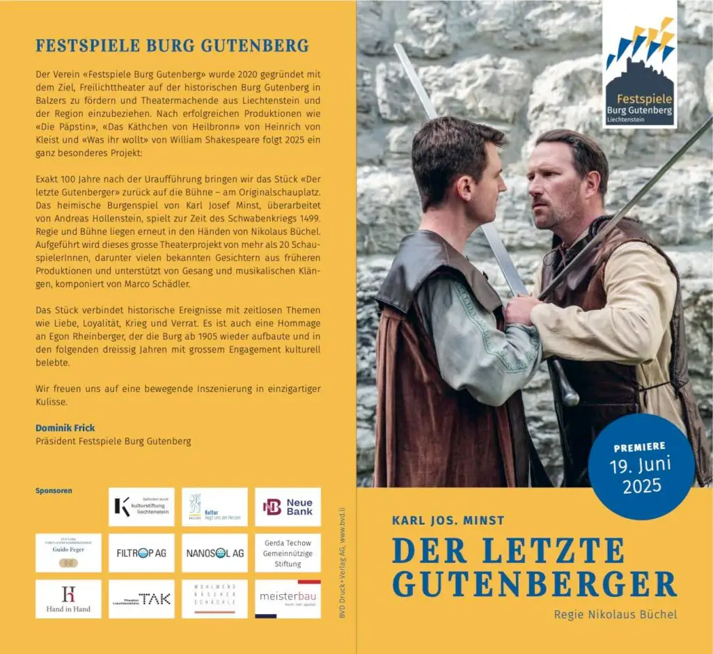 Geschrieben wurde das Theaterstück 1925 von Karl Josef Minst eigens für die Aufführungen auf der Burg Gutenberg. Andreas Hollenstein hat es dann 2015 im Rahmen seiner Masterarbeit neu verfasst.